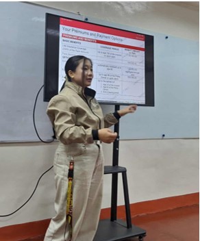 To further enhance understanding, she utilized an interactive tool to present real-life insurance scenarios based on the profiles of volunteer students and faculty members. This approach allowed participants to see how life insurance plans work in actual situations. The session concluded with an open forum, where students actively raised questions and sought clarification on various insurance-related concerns.